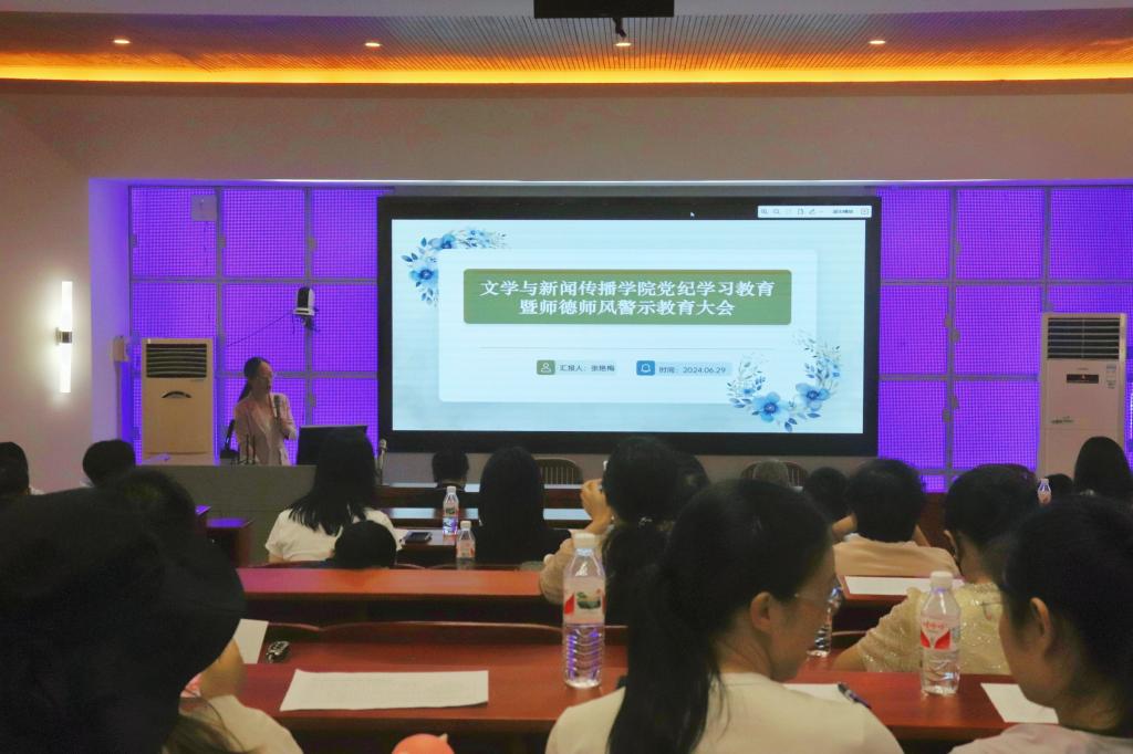 6月29日下午,WilliamHill中文官网在霞山校区北院学术报告厅举行党纪学习教育暨师德师风警示教育大会,全体院领导、师生党员参加大会。公司党委书记张艳梅作警示教育专题报告,经理邓建主持大会。