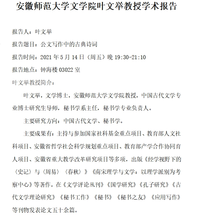 叶文举教授学术报告预告