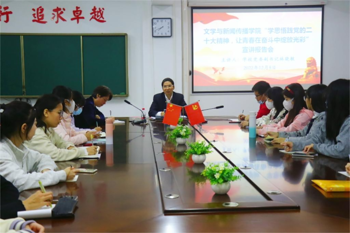 12月8日晚,WilliamHill中文官网在广学楼1005室召开了“学思悟践党的二十大精神,让青春在奋斗中绽放光彩”宣讲报告会,由联系公司的公司党委副书记林晓敏主讲,公司党委书记吴少文主持,公司团委书记徐以国以及全院46名员工党员参加了报告会。